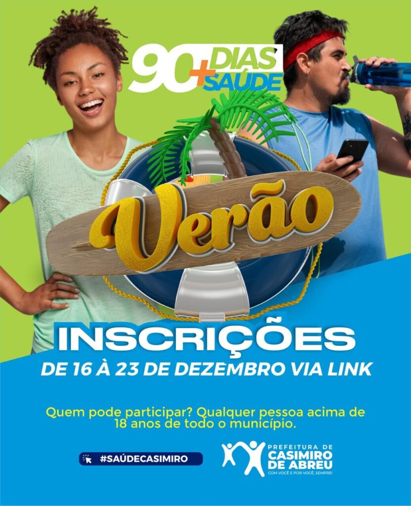 O verão está chegando e a Secretaria de Saúde já abriu novas inscrições para o projeto 90 Dias + Saúde. Esse é o seu momento de iniciar o ano novo com uma vida mais saudável, alinhada à prática de atividade física e boa alimentação.