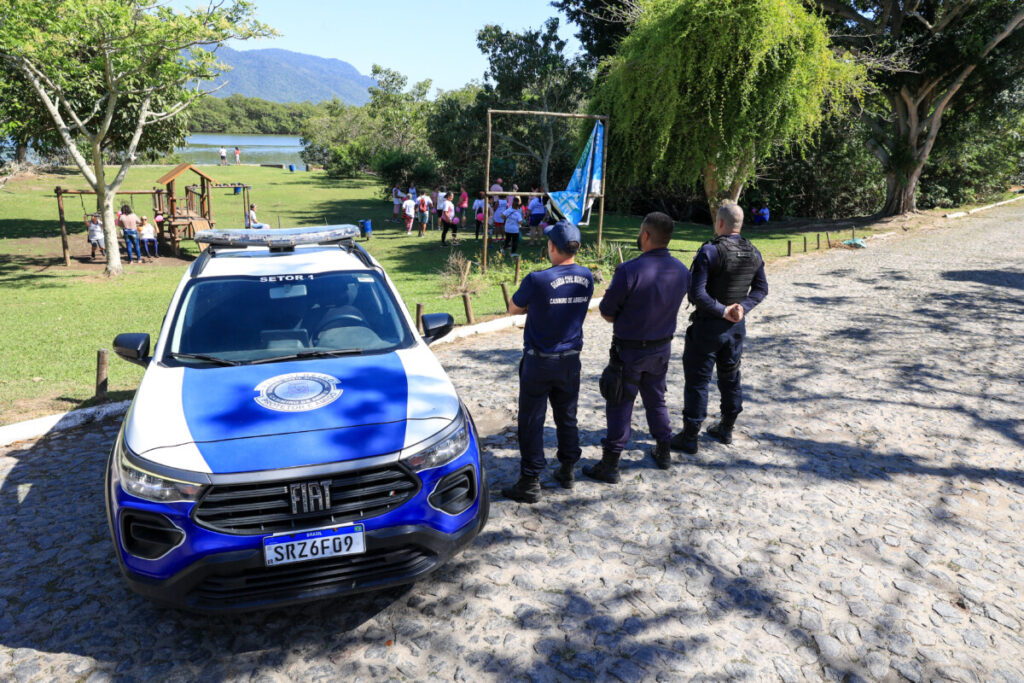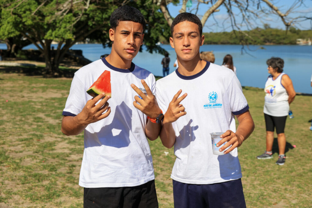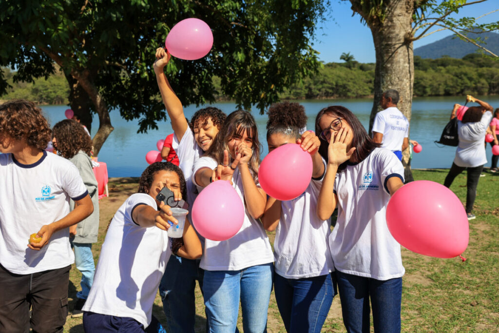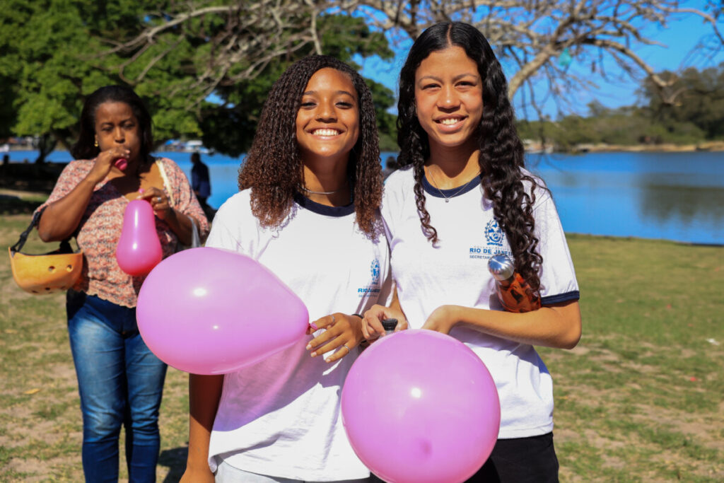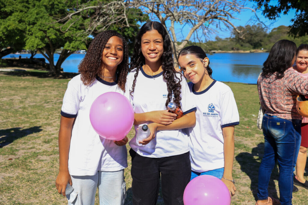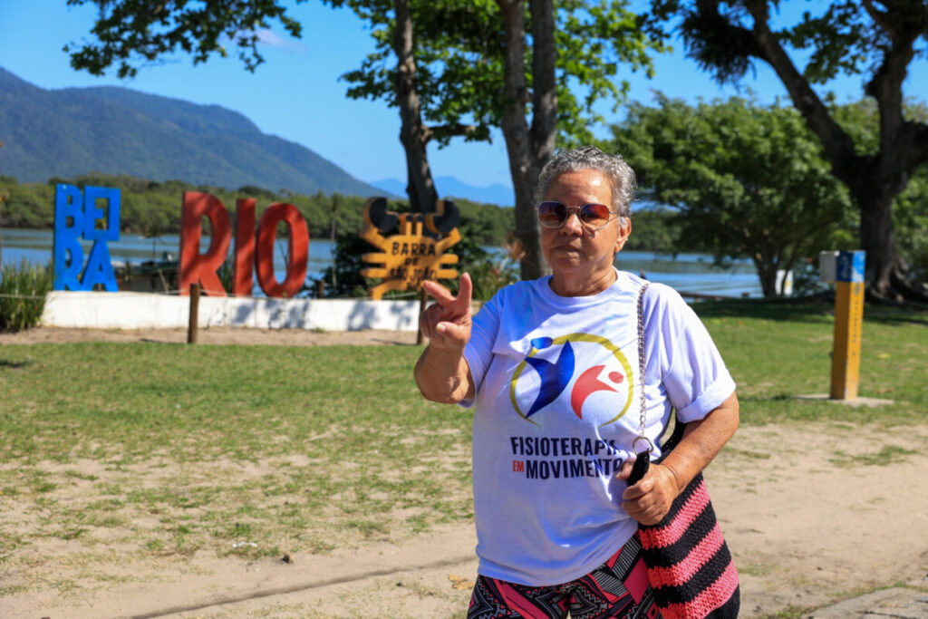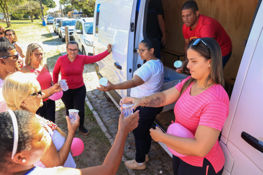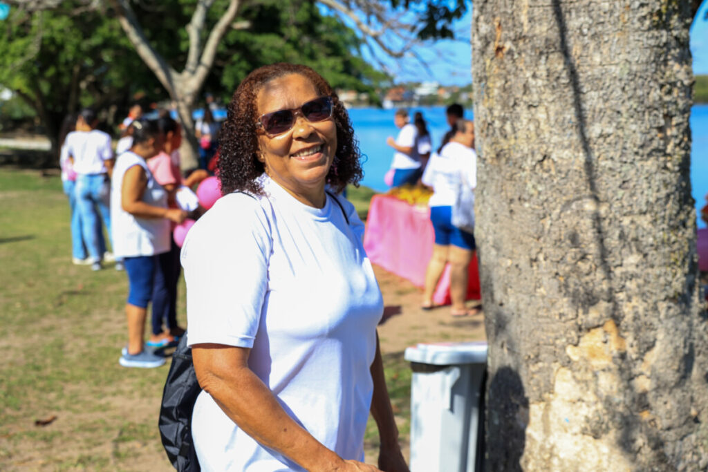 Com café da manhã e a bela vista do morro São João, às margens do rio que dá nome ao distrito, os participantes do Projeto Fisioterapia em Movimento e alunos do Colégio Estadual localizado em frente à praça As Primaveras tiveram um momento de atividade física, interação com a natureza e orientações sobre o câncer de mama.
