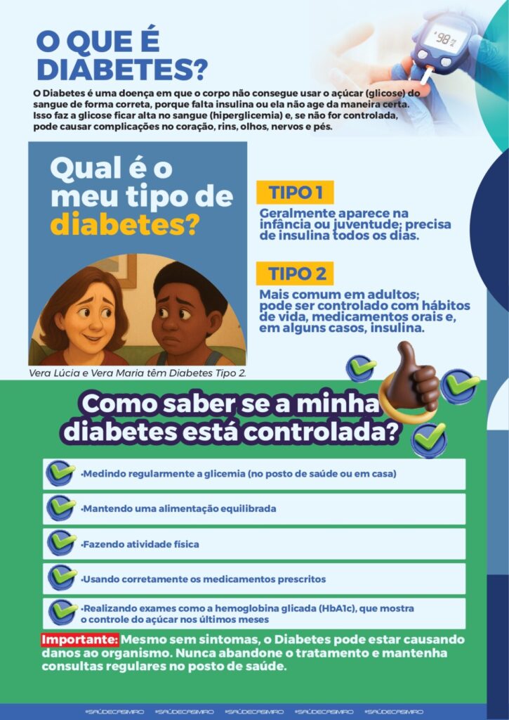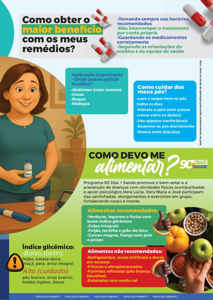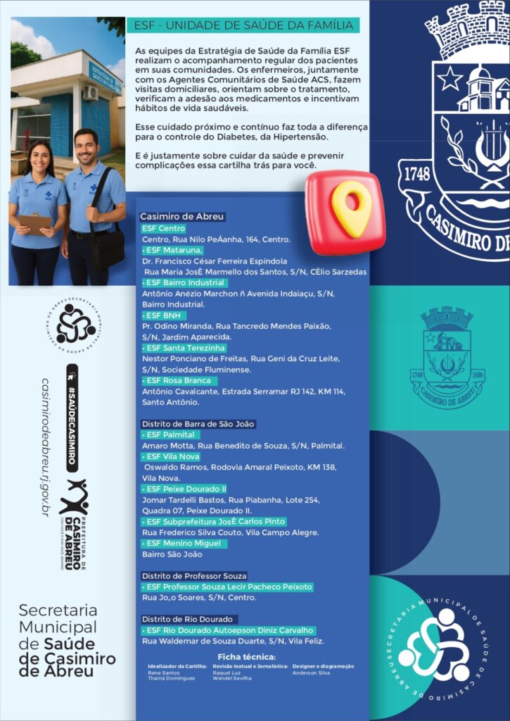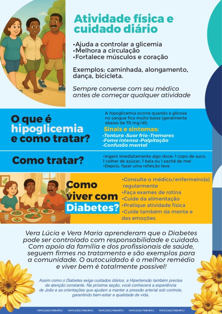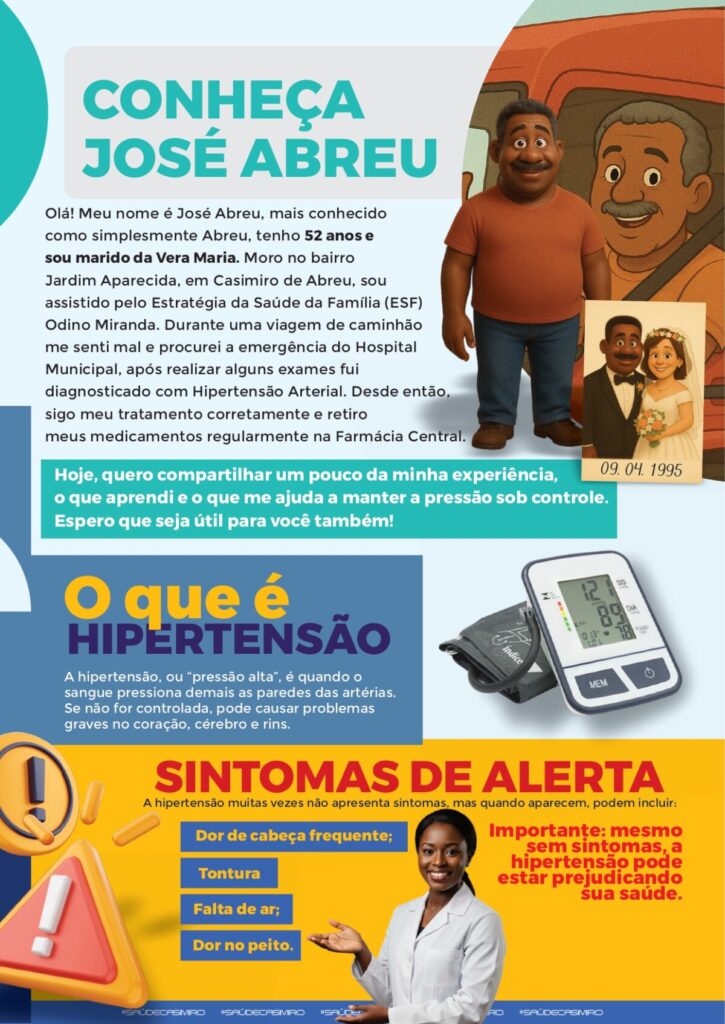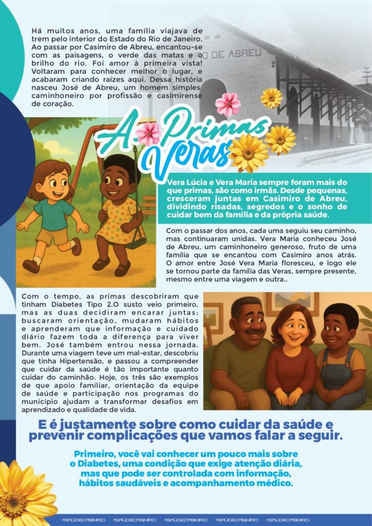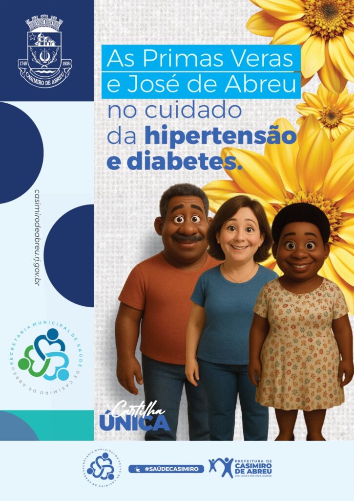 A Cartilha “As Primas Veras e José de Abreu” ensina a ter uma vida mais saudável cuidando da hipertensão (pressão alta) e diabetes. Mostrando os projetos da Secretaria, como 90 Dias + Saúde, Minha Terra Fitoterápicos e o trabalho das equipes, a cartilha apresenta de forma lúdica e explicativa que não há motivos para não cuidar com responsabilidade da sua saúde.