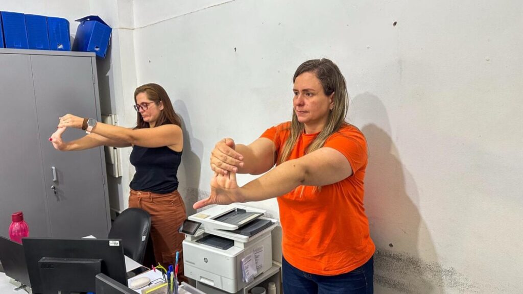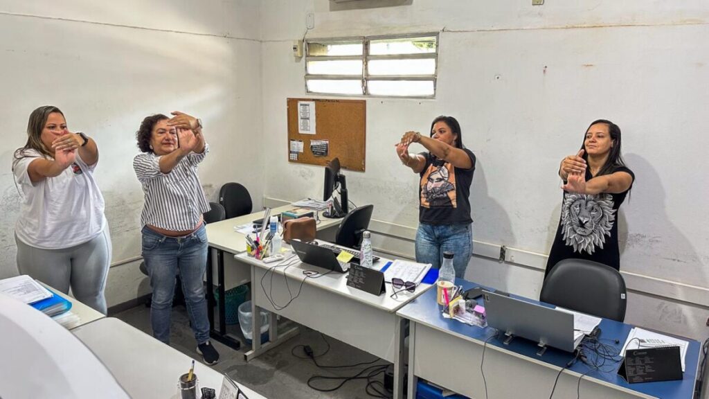 A ação vai se tornar um Projeto “𝗖𝘂𝗶𝗱𝗮𝗿 𝘁𝗮𝗺𝗯é𝗺 𝗱𝗲 𝗾𝘂𝗲𝗺 𝗰𝘂𝗶𝗱𝗮” em parceria com a Academia da Saúde e a participação da profissional de Educação Física Daniela Bremer, voltado aos funcionários da Secretaria e visando o bem-estar e a prevenção de LER (Lesão por Esforço Repetitivo) e DORT (Distúrbios Osteomusculares Relacionados ao Trabalho).