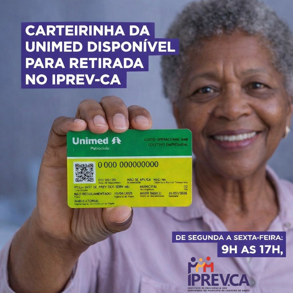 O Instituto de Previdência dos Servidores do Município de Casimiro de Abreu (IPREV-CA) informa que as carteirinhas do plano de saúde UNIMED já estão disponíveis para retirada pelos aposentados e pensionistas vinculados ao Instituto.