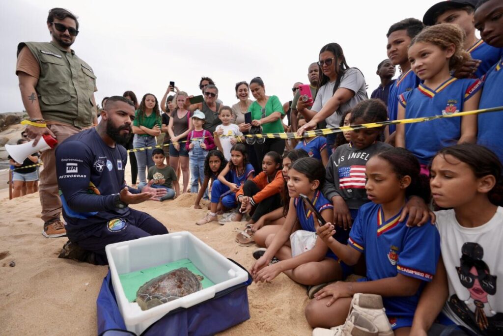 De volta ao habitat natural. O Instituto BW, em parceria com a Secretaria de Meio Ambiente de Casimiro de Abreu, realizou a soltura de uma tartaruga-verde, na tarde desta sexta-feira (07), na Prainha, em Barra de São João. A ação atraiu dezenas de crianças, jovens e adultos no local.