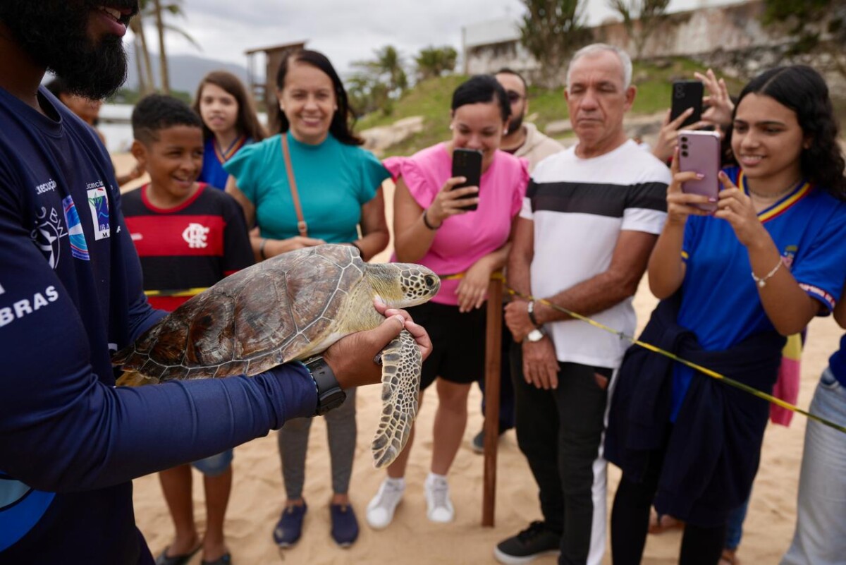 De volta ao habitat natural. O Instituto BW, em parceria com a Secretaria de Meio Ambiente de Casimiro de Abreu, realizou a soltura de uma tartaruga-verde, na tarde desta sexta-feira (07), na Prainha, em Barra de São João. A ação atraiu dezenas de crianças, jovens e adultos no local.